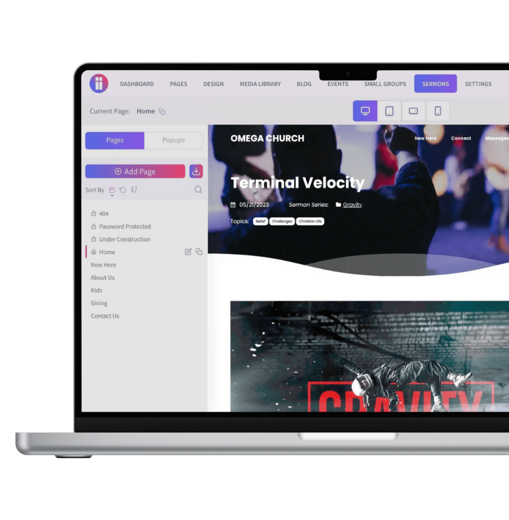 Start out by picking your initial website design kit. With our nine different church website designs, any church is guaranteed to find a design that suits them and appropriately displays their church's culture and identity.