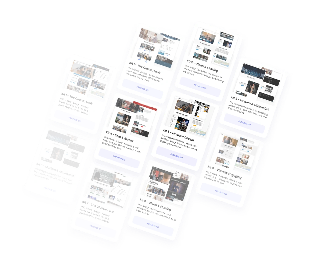 Ministry Designs has multiple different pre-optimized designs for you to choose from as a starting point! Simply pick what design kit fits your church best, provide some brand information, and you're good to go!